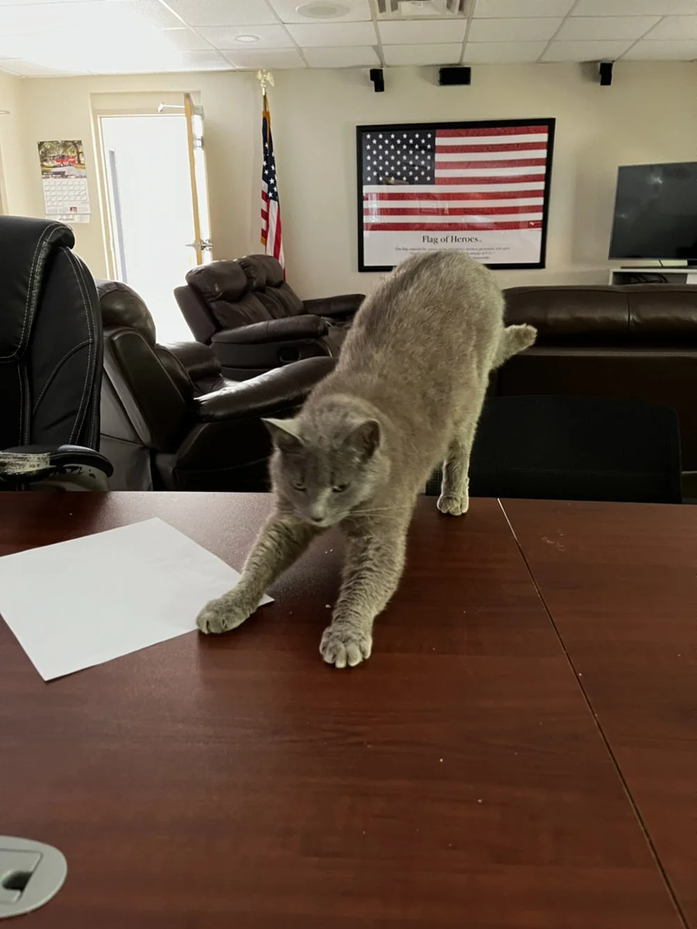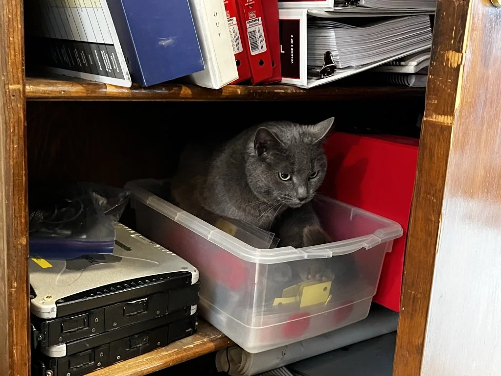 Life member Tom Lance decided she was a keeper. He followed up with the local SPCA and other shelters in the area to see if Smokey was just lost from home. No one had reported a feline of her stature missing. He then took her to a local vet to see if she was chipped. Again, nothing was found. Tom paid out of pocket for a check up at the vet and for all her shots. Just like that, we were adopted.